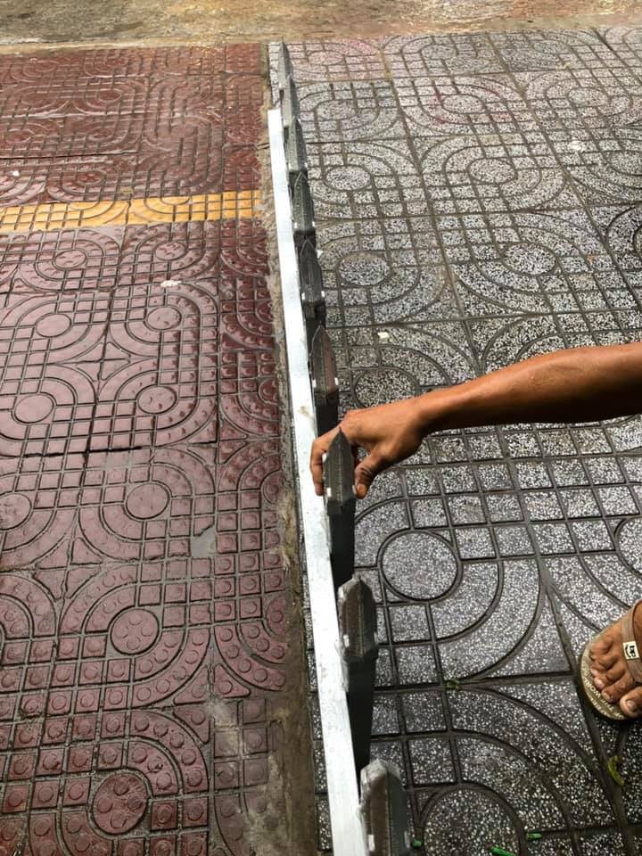 Những chiếc mũi đinh sắc nhọn này xuất hiện dày đặc trên vỉa hè, nó như ''cái bẫy'' khiến nhiều người nhìn vào cảm thấy khiếp sợ.