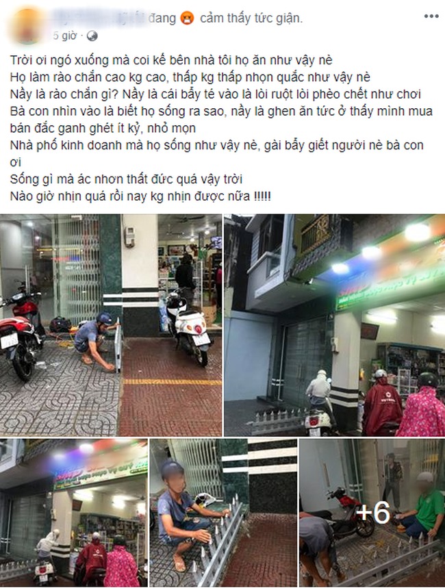 Cụ thể, Facebook của chủ cửa hàng này chia sẻ: "Trời ơi ngó xuống mà coi kế bên nhà tôi họ làm như vậy nè. Họ làm rào chắn cao không cao, thấp không thấp, nhọn hoắt như vậy nè.
