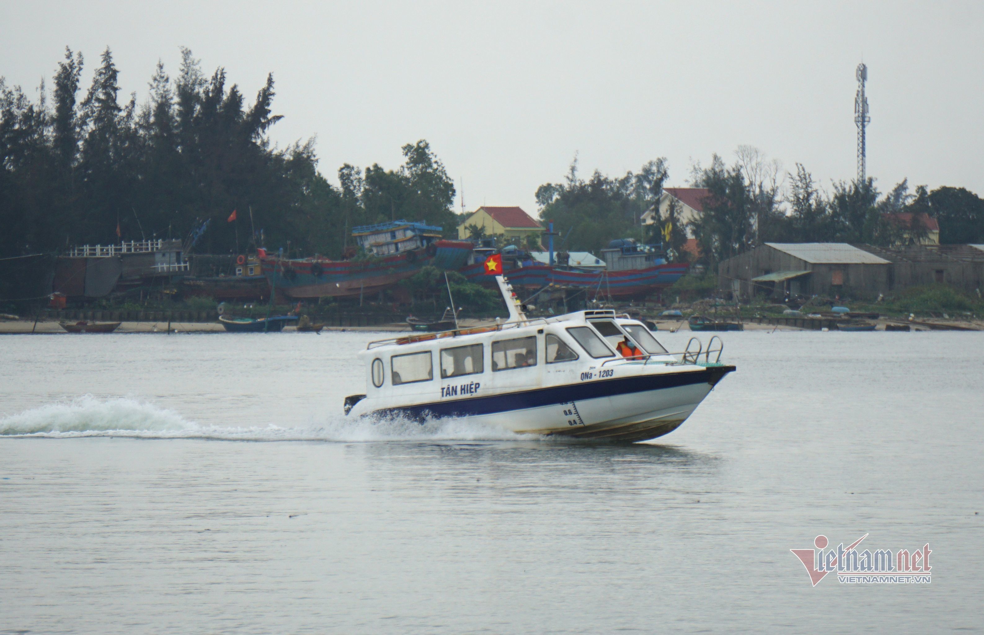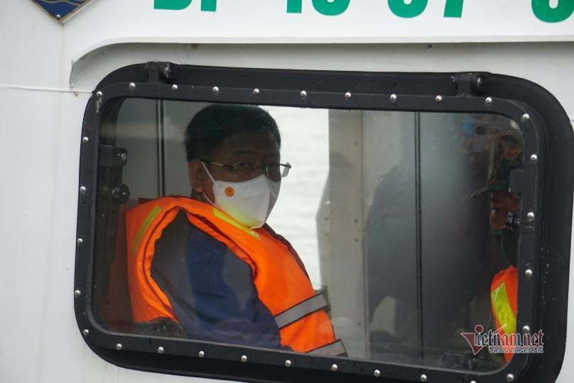 8h40, Thứ trưởng Bộ GTVT Nguyễn Xuân Sang cùng đoàn công tác ra hiện trường ca nô chìm để kiểm tra công tác tìm kiếm nạn nhân mất tích.