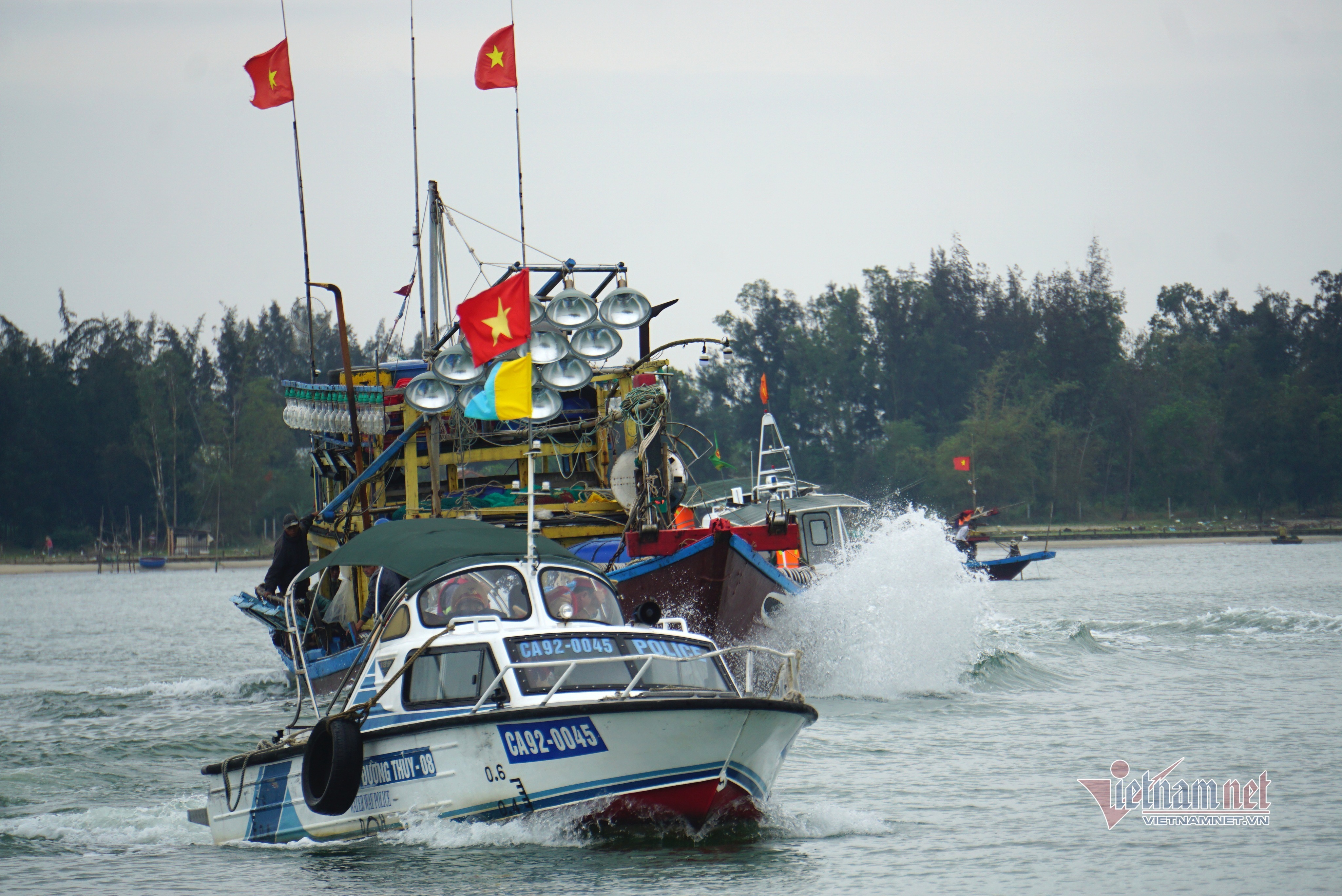 "Bên cạnh đó, có 2 máy bay quần thảo trên không hỗ trợ tìm kiếm nạn nhân, phía trên bờ có gần 100 người tham gia" - Đại tá Nguyễn Quang Nam nói. Trước đó, 2 trong số 4 nạn nhân nạn nhân mất tích đã tìm thấy trong đêm.
