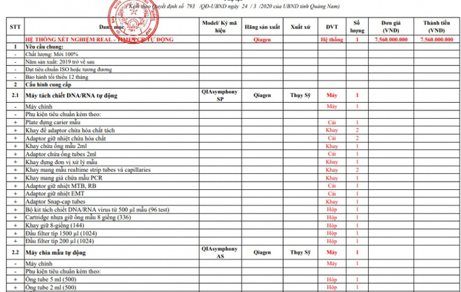 Theo thông tin ban đầu, hợp đồng ban đầu được ký ngày 1/3 giữa Sở Y tế Quảng Ninh và đơn vị cung cấp hệ thống máy xét nghiệm Realtime PCR tự động là 8,4 tỉ đồng.
