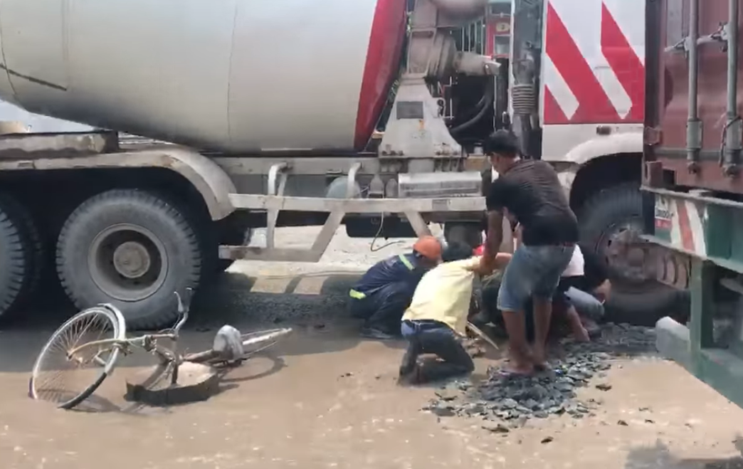 Khi đến hiện trường vụ tai nạn, thấy thi thể mẹ không nguyên vẹn, chiếc nón lá và xe đạp móp méo trên đường, các con của nạn nhân gào khóc thảm thiết.