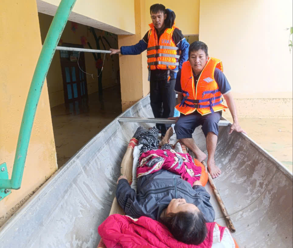 "Sàn kê đồ trong nhà bị sập đè trúng bà Lâm. Nhận được tin báo, lực lượng của xã đưa ghe đến vận chuyển nạn nhân lên cấp cứu tại Bệnh viện Đa khoa huyện Lệ Thuỷ" – ông Quyết nói thêm.