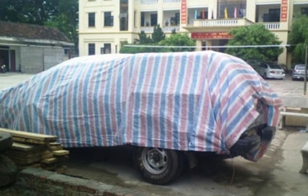 Chiếc xe ông Trình cầm lái gây tai nạn đang được trùm bạt tạm giữ tại cơ quan điều tra. Ảnh: Tiến Thành. |