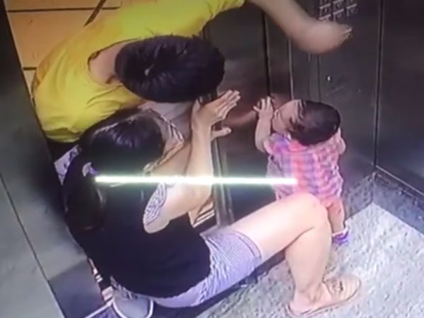 Thấy cửa mở, người mẹ rời mắt khỏi điện thoại thì thấy con khóc nên hoảng hốt cố gắng kéo tay con ra nhưng không được. Những người bên ngoài thang máy cũng cố gắng giúp hai mẹ con nhưng do cửa có vật cản nên cánh cửa không thể di chuyển. Do một phần tay bị kẹt trong cửa thang máy nên bé gái la khóc, vô cùng hoảng sợ.