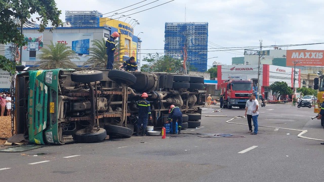 Vào lúc 10h26' hôm qua 20/10, một chiếc xe tải lưu thông trên đường Tây Sơn (TP Quy Nhơn, đoạn vòng xoay Tây Sơn) bất ngờ lật ngang đè lên 3 người đi trên xe máy.