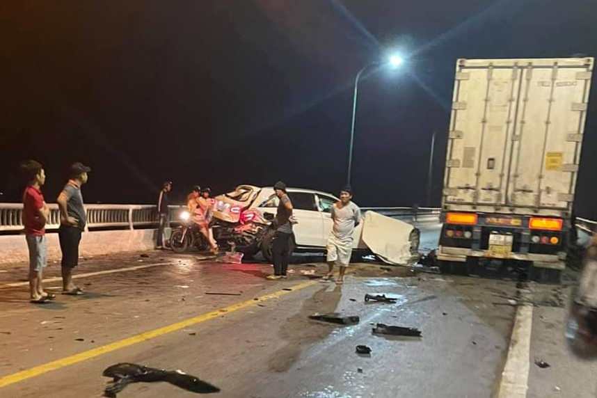 Theo Vietnamnet, khi đến cầu Quán Hàu, ô tô con này đã đâm vào sau đuôi xe tải mang BKS 50LD 11.662 đi cùng chiều.