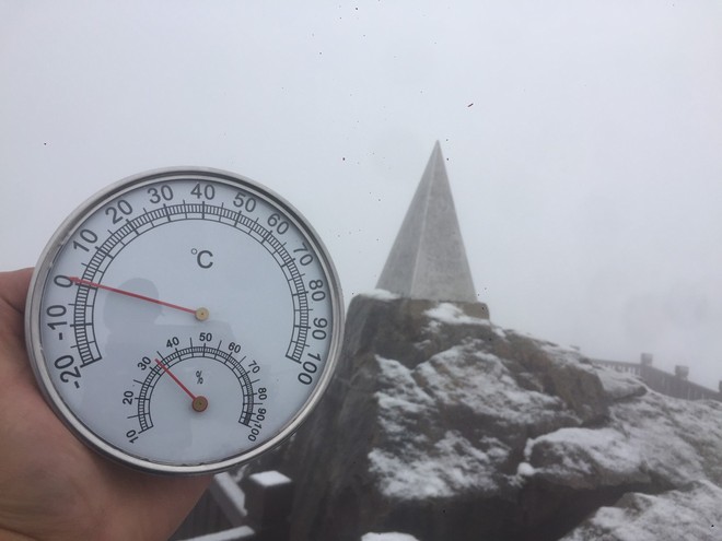 Sáng sớm nay, do ảnh hưởng từ đợt không khí lạnh tăng cường, nhiệt độ đỉnh Fansipan xuống dưới âm 1 độ C, xuất hiện mưa tuyết dày.