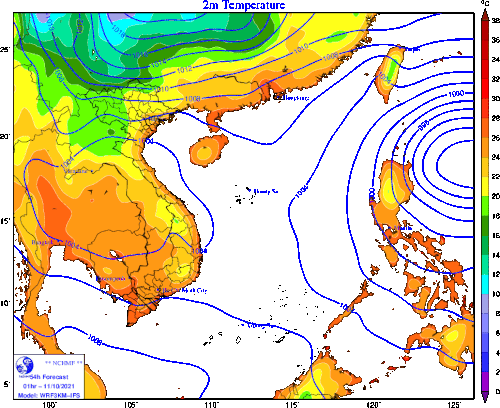 Do ảnh hưởng của không khí lạnh nên trong ngày 10-11/10, ở Bắc Bộ và Thanh Hóa trời chuyển lạnh, vùng núi phía Bắc có nơi trời rét với nhiệt độ thấp nhất phổ biến 19-21 độ, vùng núi có nơi dưới 18 độ.