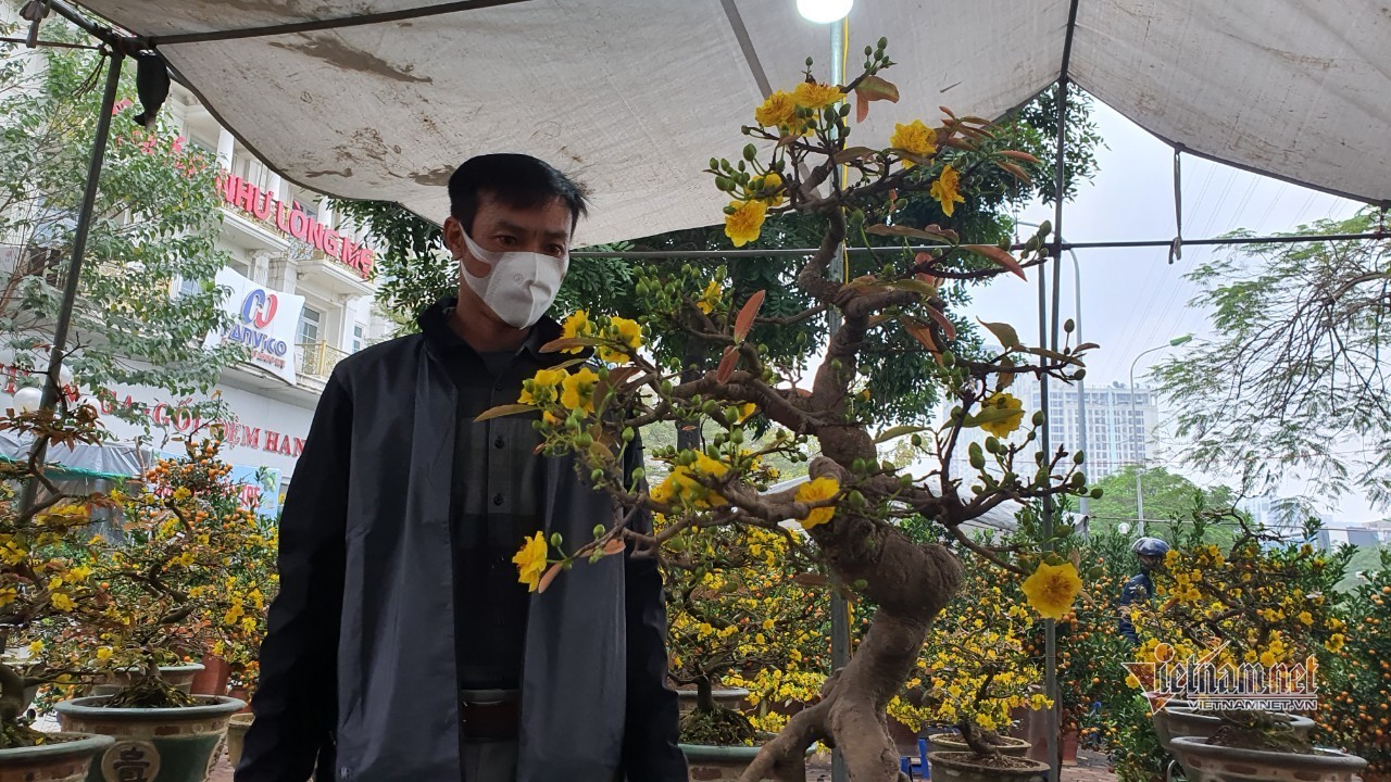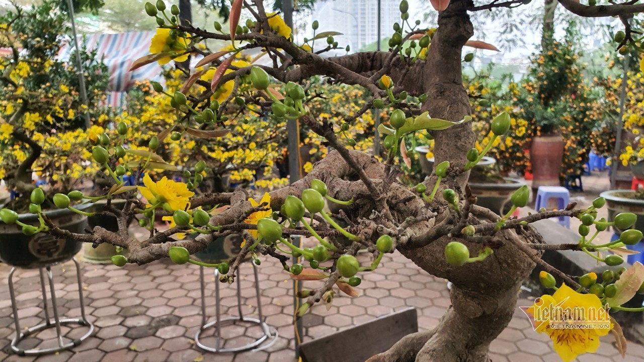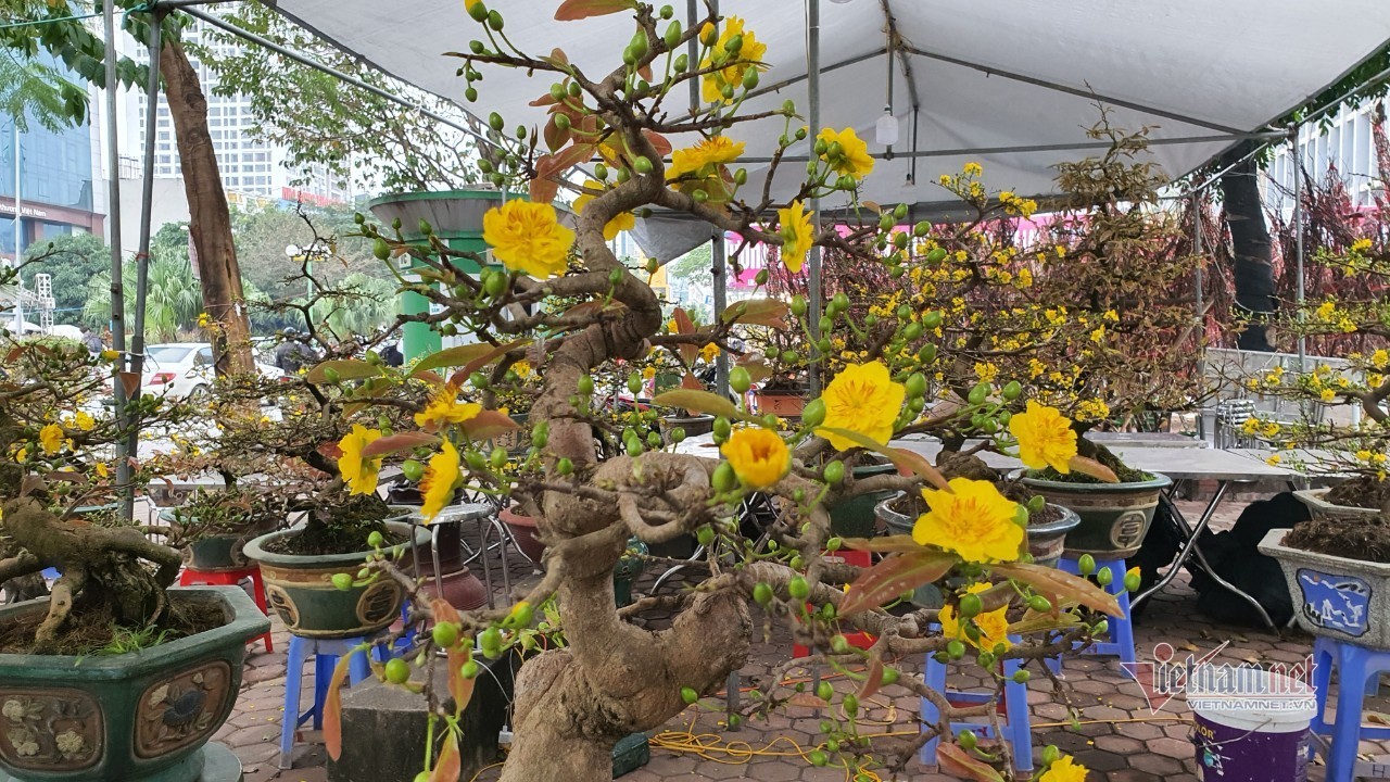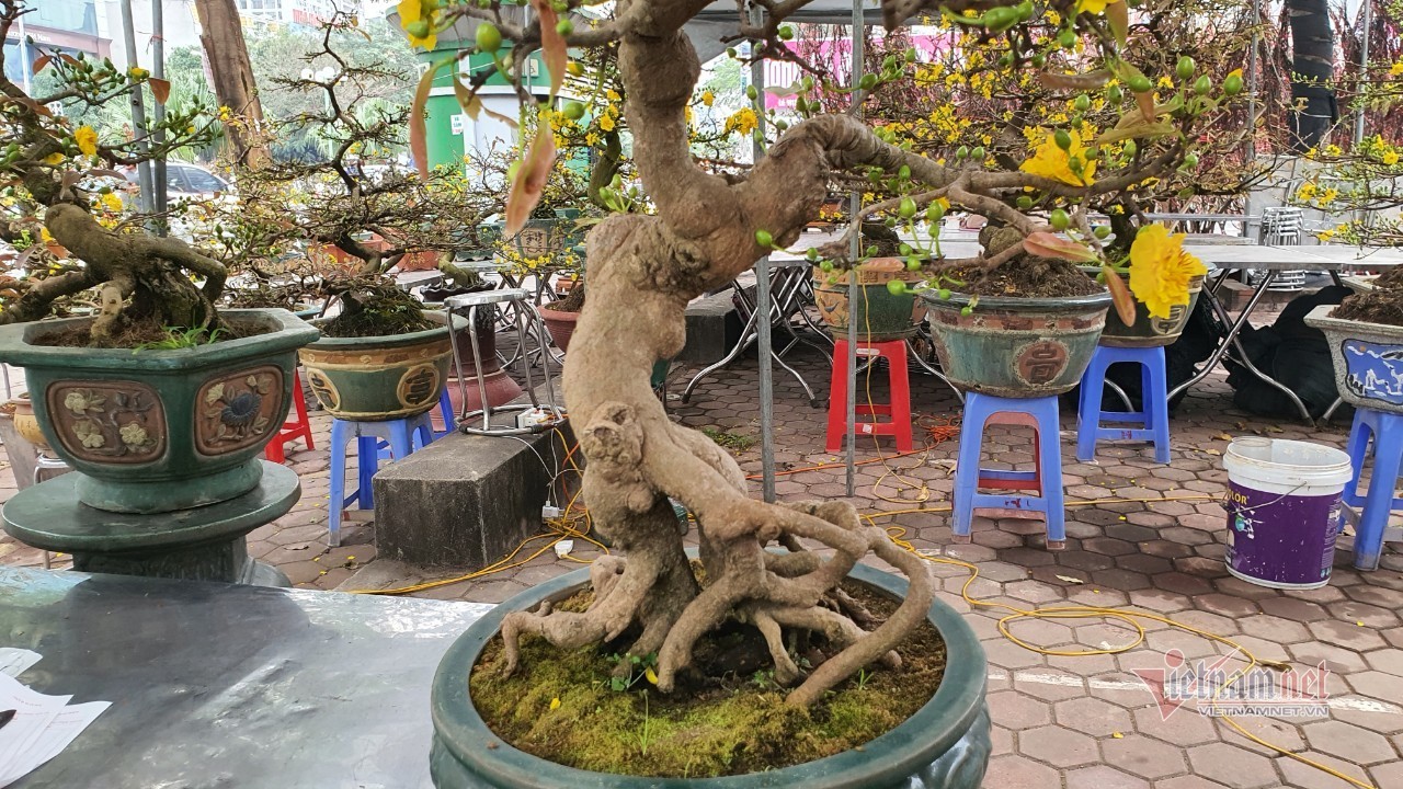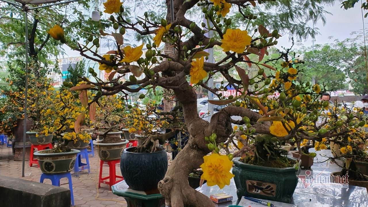 Ngoài cây đào thất thốn có giá bán hơn 1 cây vàng, chợ hoa xuân Vạn Phúc còn có cây mai vàng Bình Định bonsai giá bán trên 30 triệu đồng.