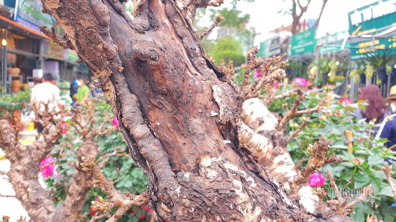 Cây đào thế được giới thiệu là đào tiến vua được kê ở vị trí giữa trục đường chính của chợ hoa Vạn Phúc. Chủ hàng cho biết, cây có giá bán 70 triệu đồng. Những cây nhỏ hơn, giá không dưới 30 triệu đồng/cây.