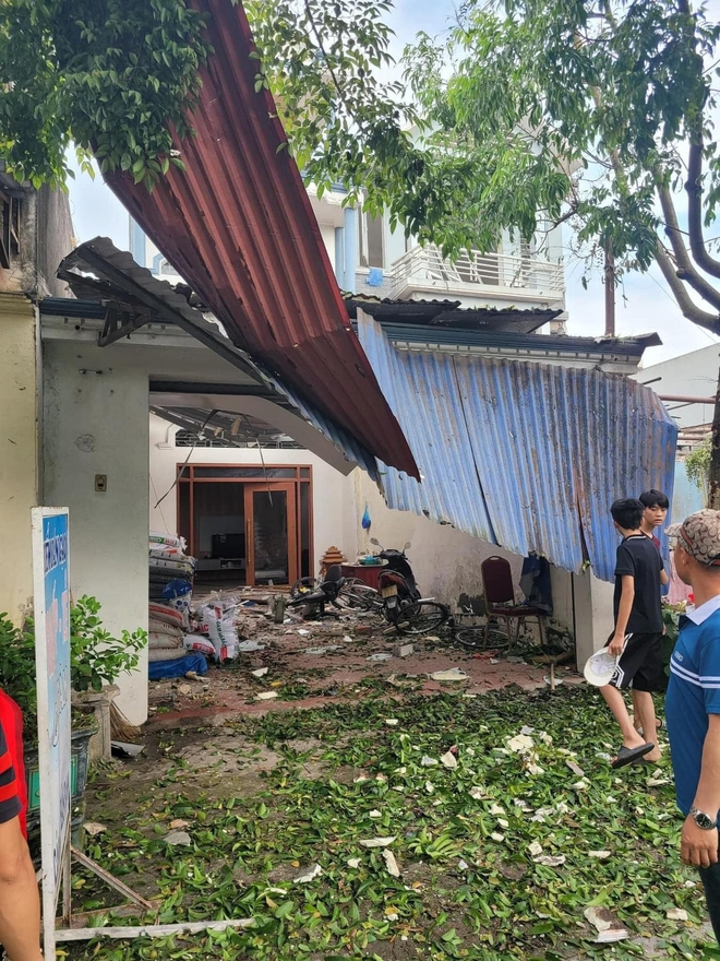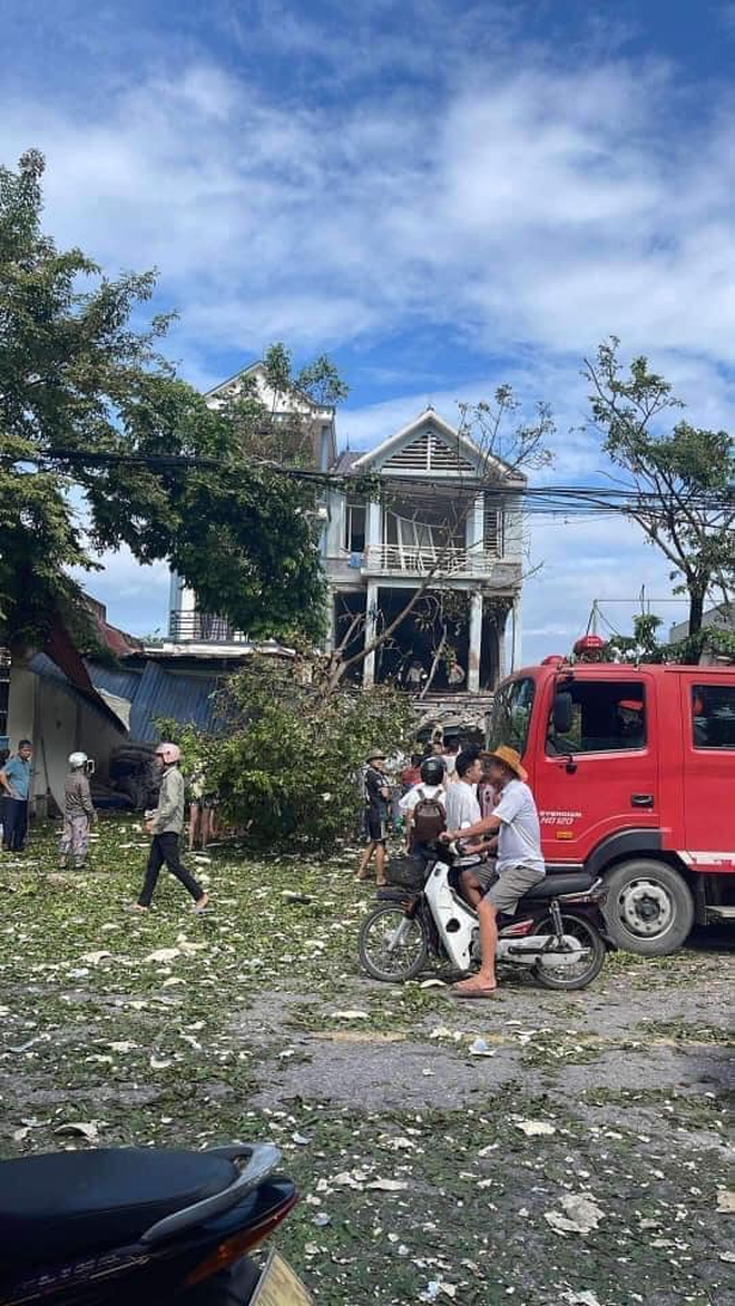 Tại hiện trường, toàn bộ ngôi nhà 3 tầng này bị hư hại. Riêng tầng 1 chịu ảnh hưởng nặng nhất, đổ sập phía trước nhà; toàn bộ cửa kính và một phần tường tầng 2 bị thổi bay. Vụ nổ cũng khiến 6-7 căn nhà xung quanh bị ảnh hưởng.