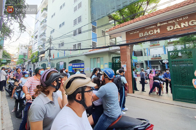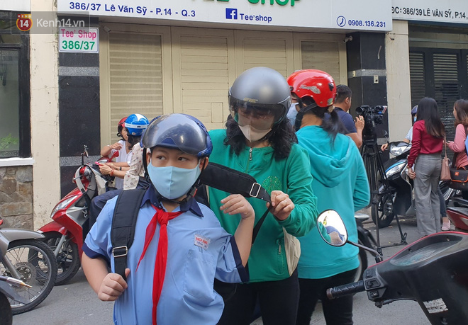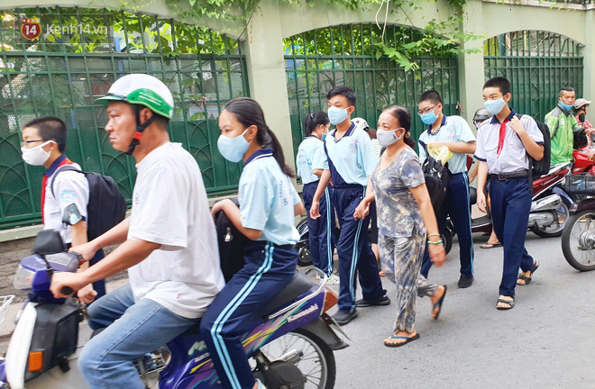 6h20 sáng, rất đông học sinh đã tất bật đến trường, các em được thầy cô giáo, bảo vệ tiến hành sát khuẩn tay trước khi vào lớp. Không ít phụ huynh vì lo sợ đã cầm tay, dắt con em mình đến tận cổng trường, sau khi thấy con vào lớp mới an tâm ra về.