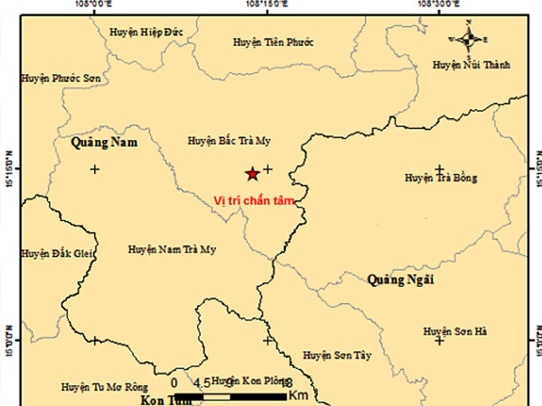 Theo đó, 2 trận động đất đều xảy ra tại huyện miền núi Bắc Trà My (Quảng Nam) và cách nhau chỉ khoảng 20 phút.