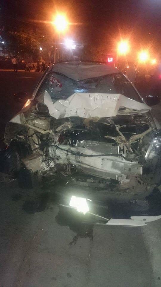 | Chiếc taxi bị tông nát cả phần đầu - Ảnh: Facebook |