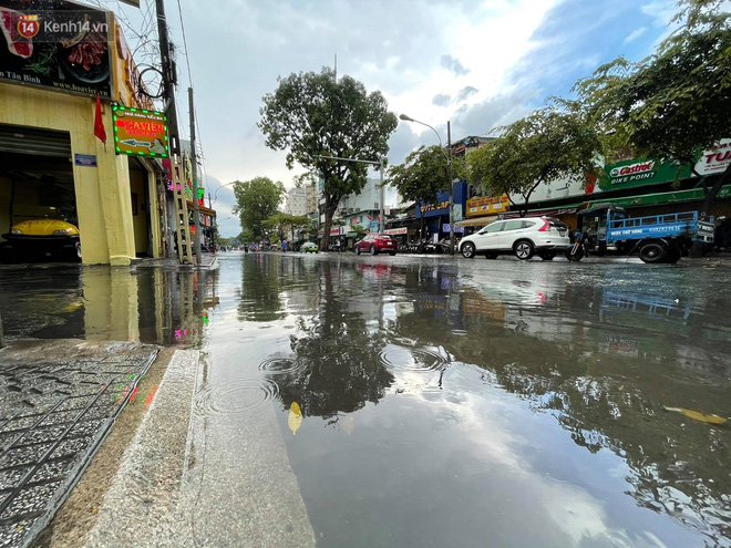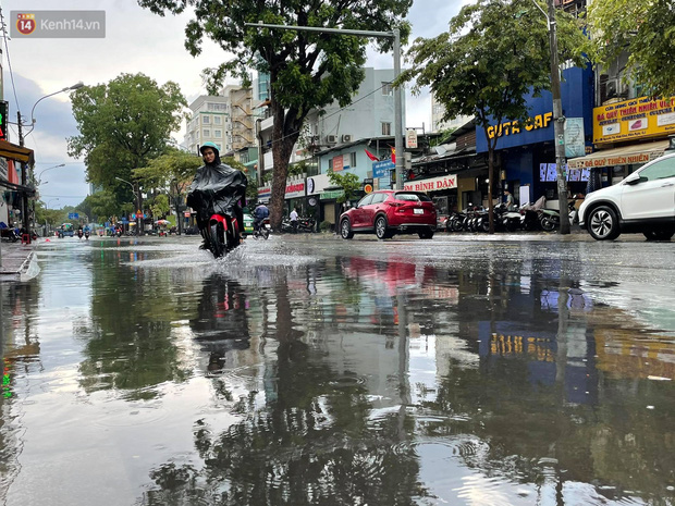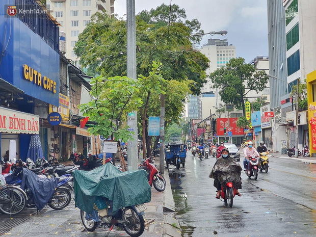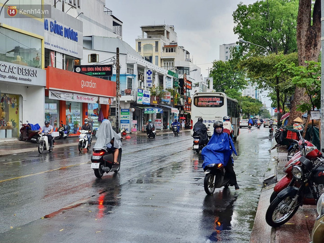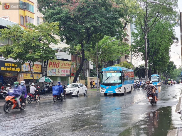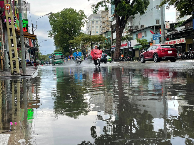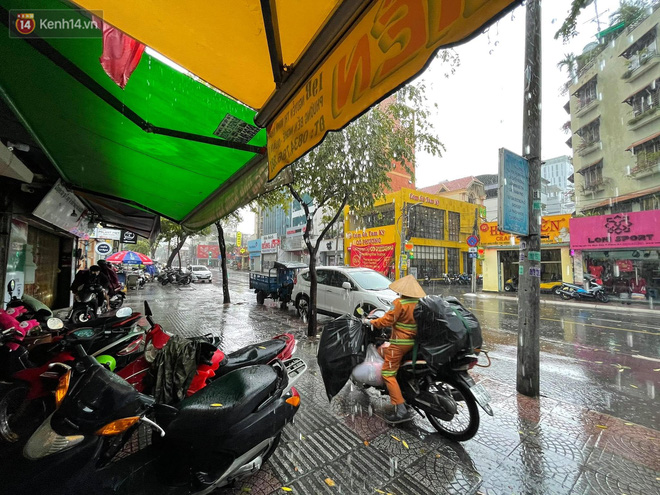 Trên đường Nguyễn Thị Minh Khai (quận 1), cơn mưa lớn kéo dài hơn 1 tiếng đồng hồ khiến nước chảy không kịp, một số người ướt sũng vì quên mang áo mưa.