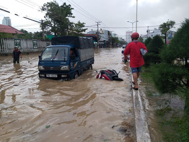 Do mưa lớn, kéo dài liên tục, nhiều khu vực thuộc thành phố Nha Trang, thị xã Ninh Hòa, huyện Diên Khánh vẫn bị ngập sâu. Tại thành phố Nha Trang, sau trận mưa tối qua, ngoài các xã phía Tây ven sông Cái, các xã, phường phía Bắc, phía Nam thành phố bị ngập. Nhiều tuyến đường cửa ngõ thành phố như 2/4, Điện Biên Phủ hay Nguyễn Tất Thành vẫn bị ngập sâu từ 0,5-0,8m, các khu dân cư xung quanh ngập sâu hơn 1m.