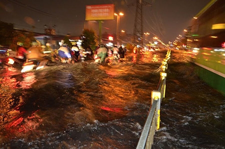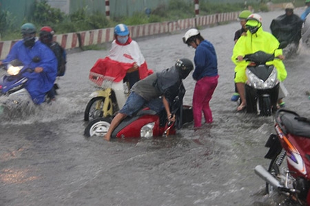 Cơn mưa cực lớn kéo dài suốt nhiều tiếng đồng hồ xảy ra khắp TP HCM khiến nhiều tuyến đường bộ chìm trong biển nước, gây cản trở lưu thông.