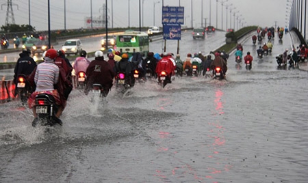Mưa đã gây ngập nặng trên đại lộ Phạm Văn Đồng, tuyến đường được xem là đẹp nhất TP HCM, khiến người dân vô cùng ngao ngán. |