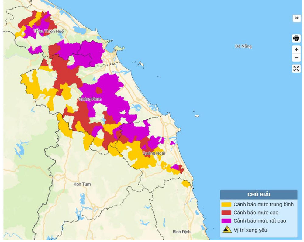 Cảnh báo cấp độ rủi ro thiên tai do mưa lớn, lốc, sét: khu vực Thừa Thiên Huế, Đà Nẵng, Quảng Nam: cấp 3; Nam Hà Tĩnh, Quảng Bình, Quảng Trị, Quảng Ngãi, Bình Định: cấp 1.