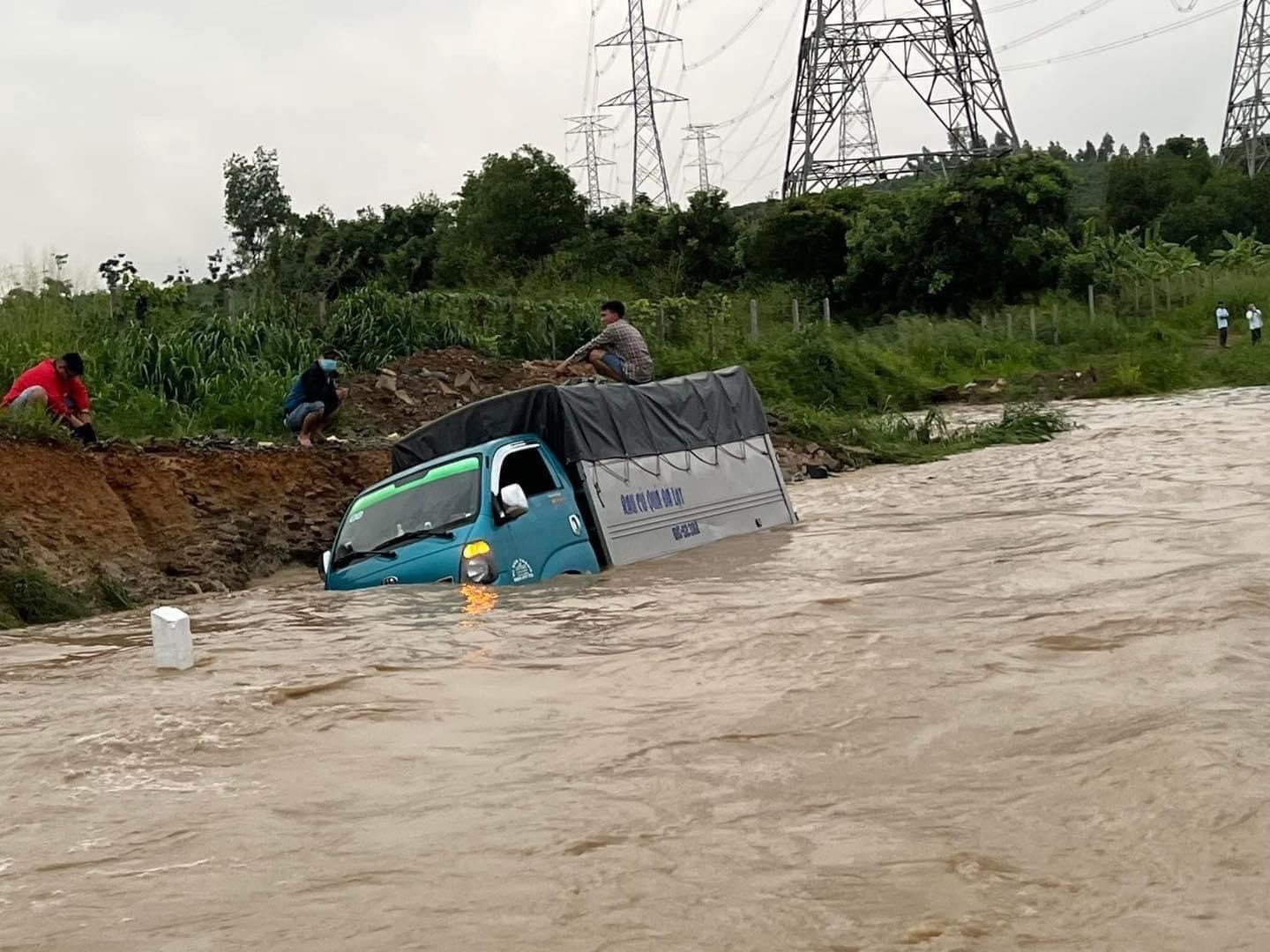 Tại hiện trường, một xe tải bị nước cuốn trôi vào lề, ngập nửa thân xe. Một số ô tô cố gắng chạy qua nhưng bị chết máy tại điểm ngập.