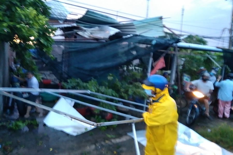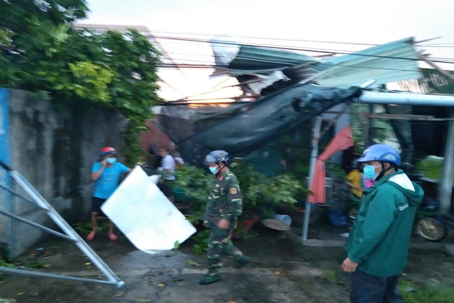 Cũng theo ông Quân do địa phương đang thực hiện giãn cách xã hội theo Chỉ thị 16 để phòng, chống dịch COVID-19 nên sau cơn lốc xoáy chính quyền địa phương không cho người dân xung quanh đến phụ khắc phục hậu quả, chỉ có lực lượng công an và quân đội giúp người dân thu gom đồ đạc và lo cho người dân có chỗ ở tạm.