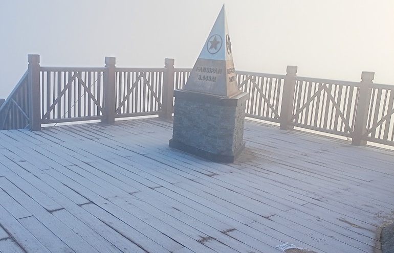 Thời điểm tuyết rơi, nhiệt độ trên đỉnh đo được khoảng 1 độ C, trời có mưa nhẹ. Hiện nền nhiệt tiếp tục giảm, trời rét buốt.