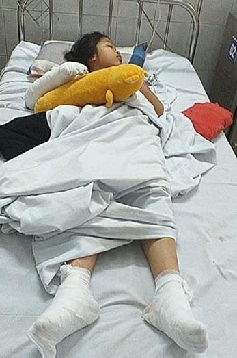 Trong lúc cứu em, hai chân và cánh tay phải của Trang cũng bỏng sâu.