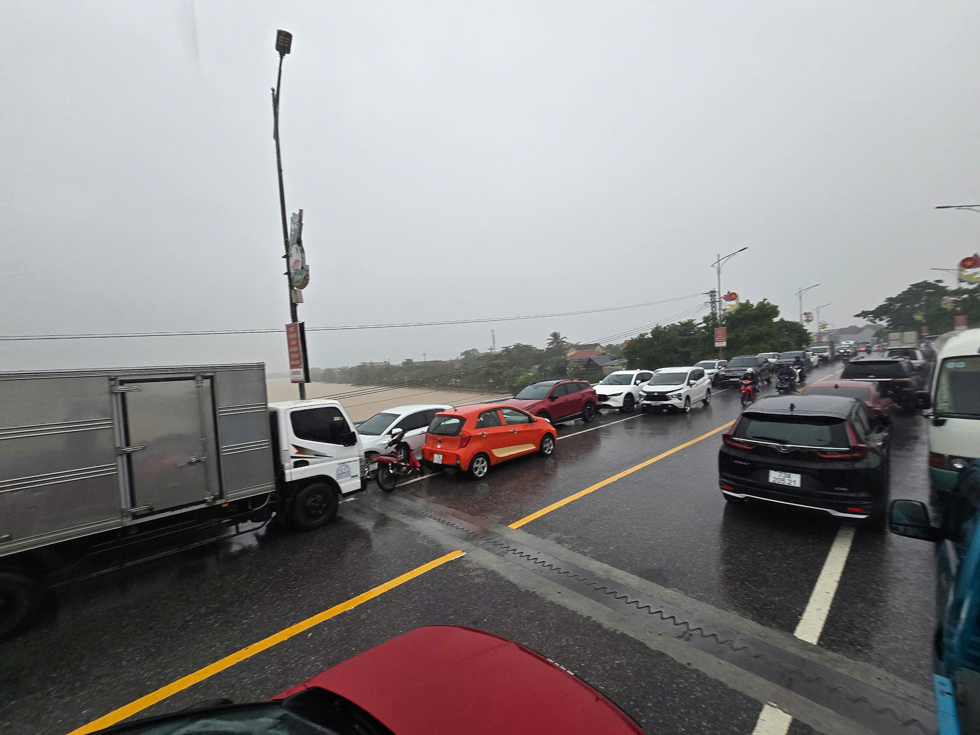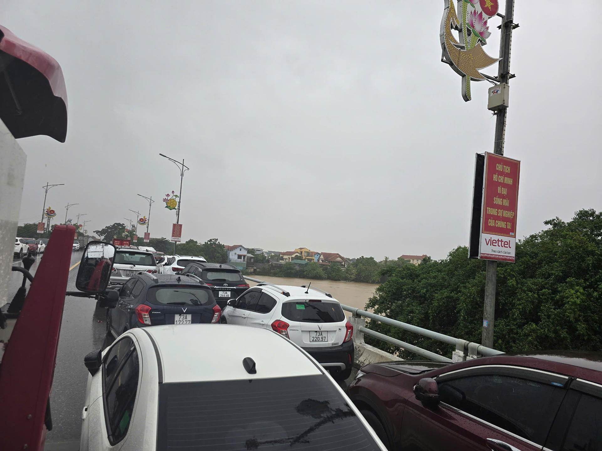 Để tránh tình trạng tắc đường qua các cây cầu cũng như gây ảnh hưởng đến công tác di chuyển, phòng chống thiên tai, cơ quan chức năng tại huyện Lệ Thủy đã bố trí lực lượng để sắp xếp phương tiện dừng đỗ trên các cầu, không để chắn hết đường.