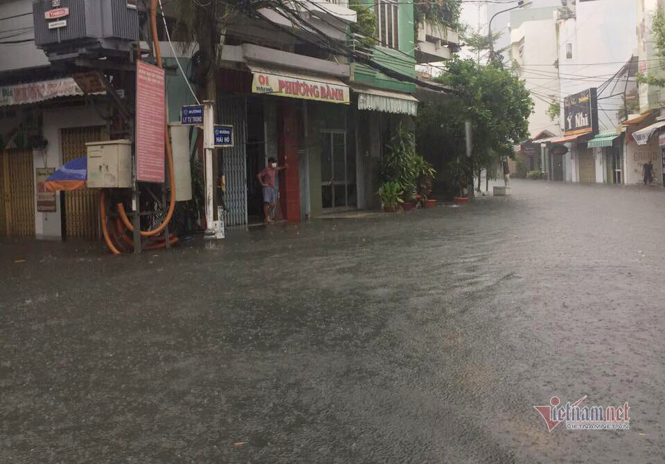 Mưa lớn khiến nhiều khu vực ở trung tâm TP Đà Nẵng bị ngập cục bộ, nước tràn vào nhà dân.