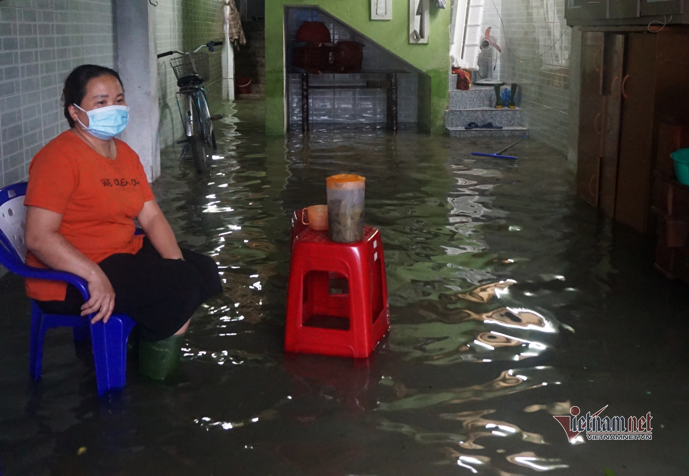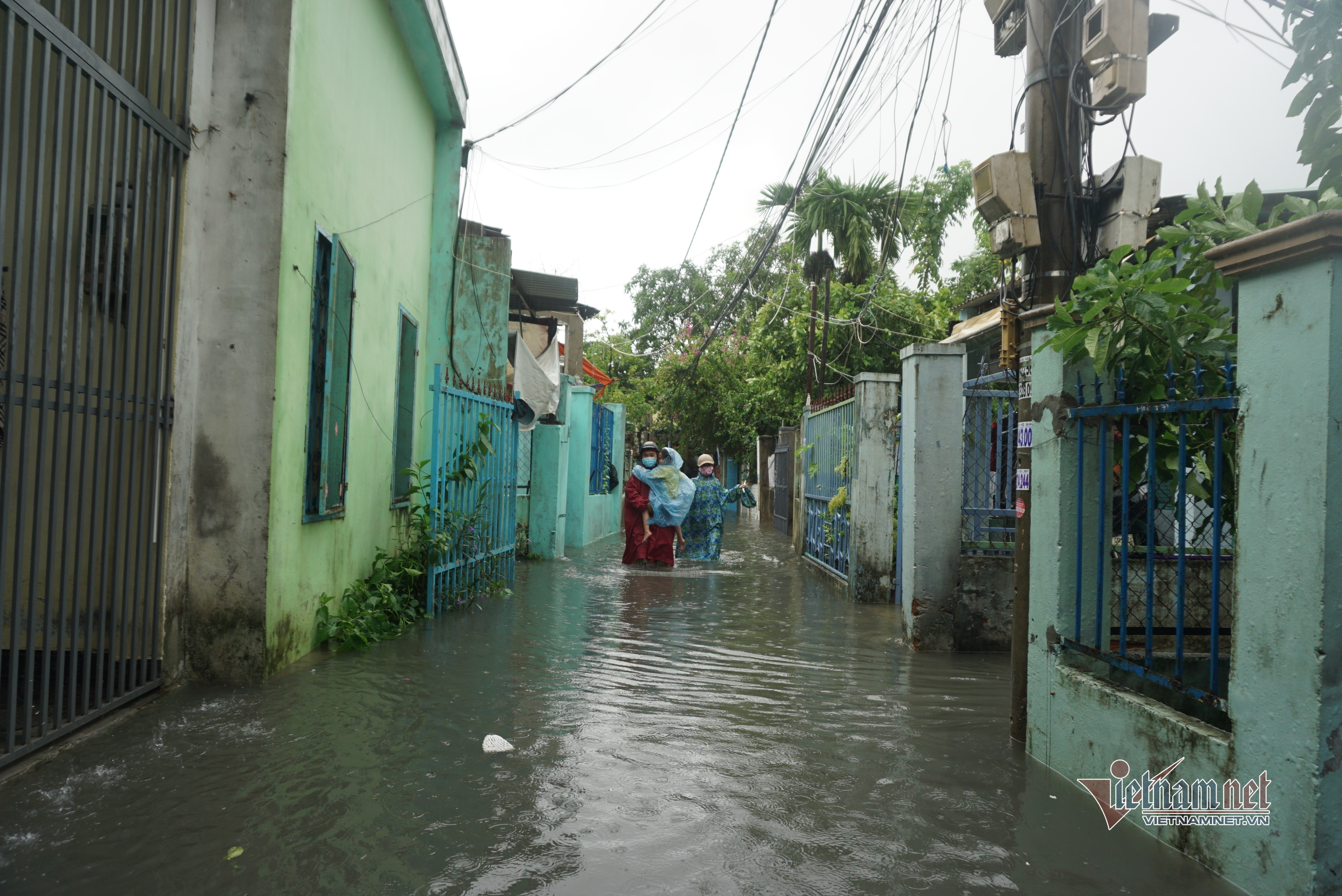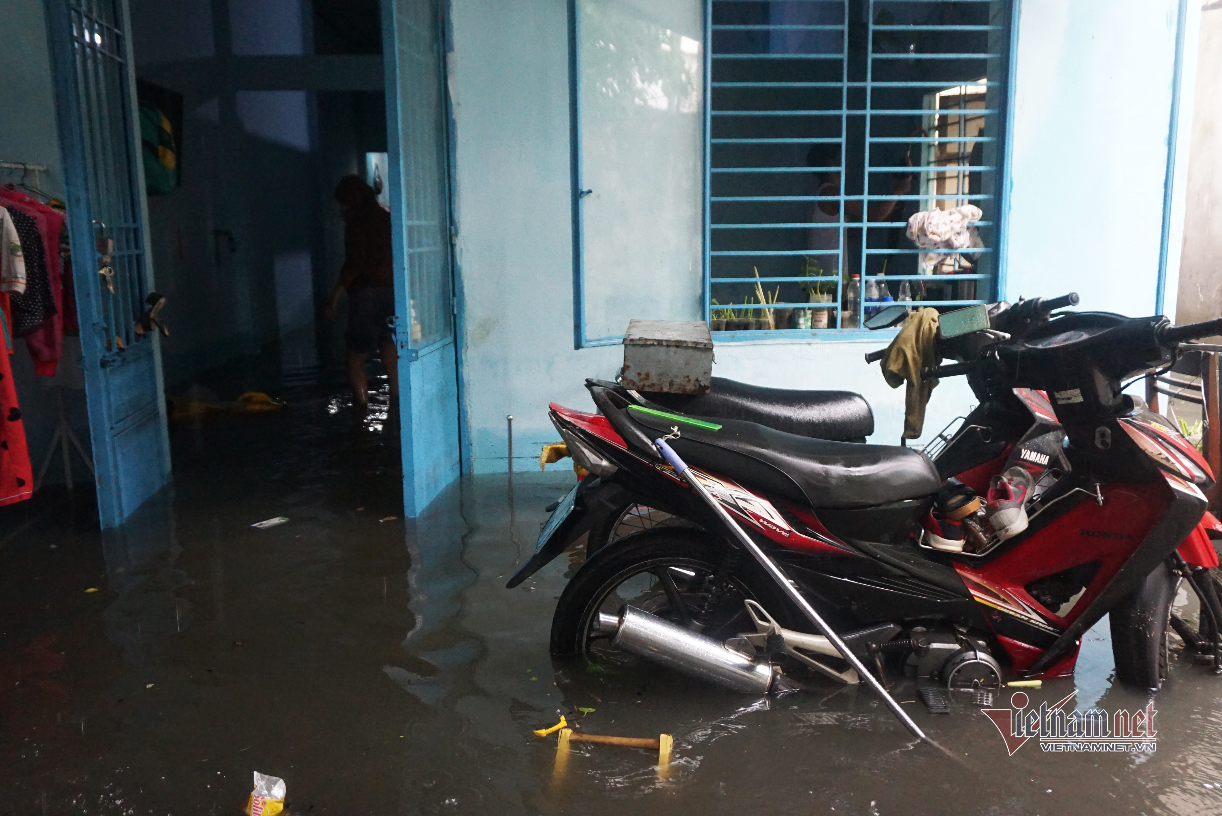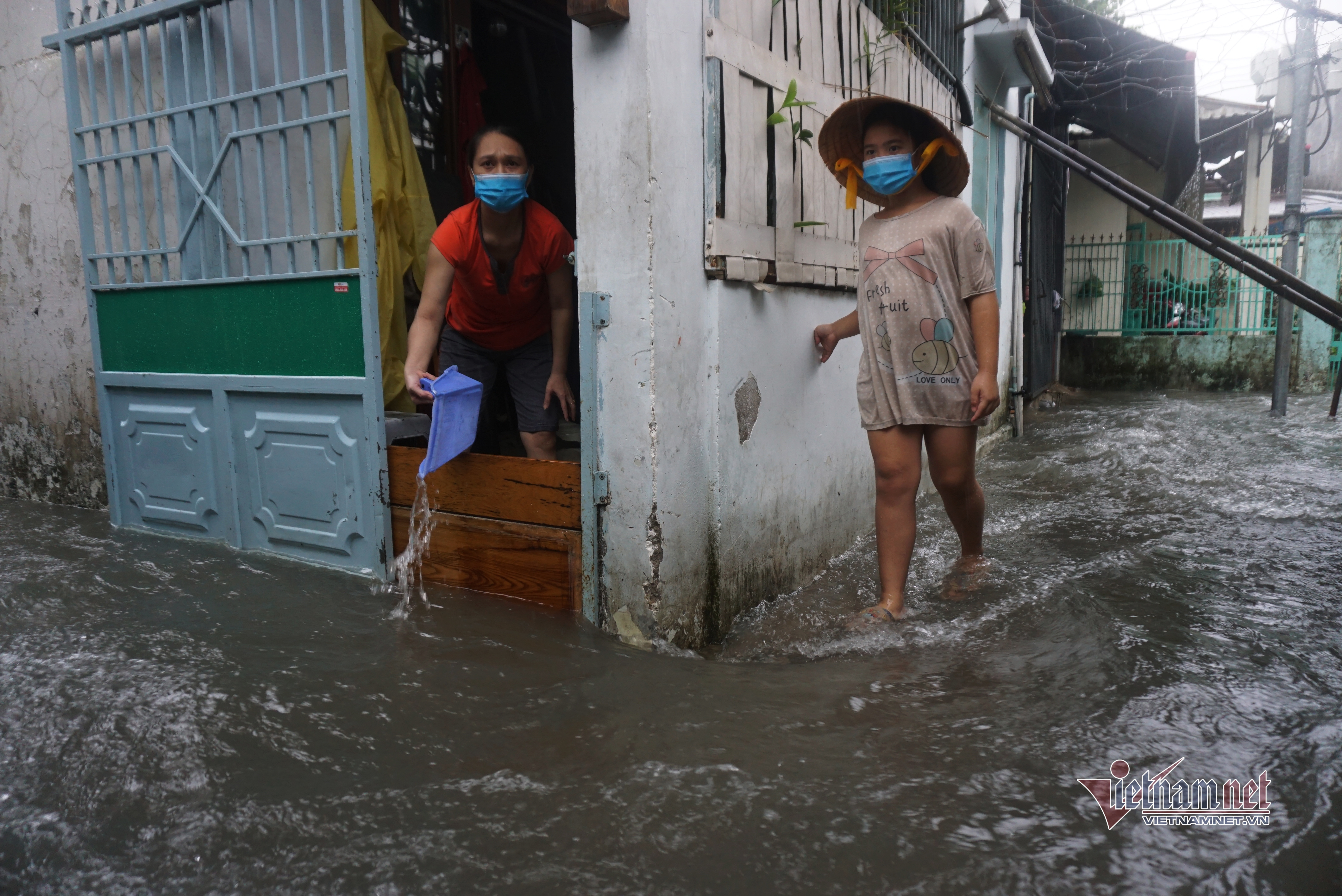 Một số hộ dân cho hay trong đêm 11/9, họ phải thức để tát nước ra ngoài. Lo nước lớn, một số hộ dân đưa con nhỏ đi đến nhà người thân để gửi .