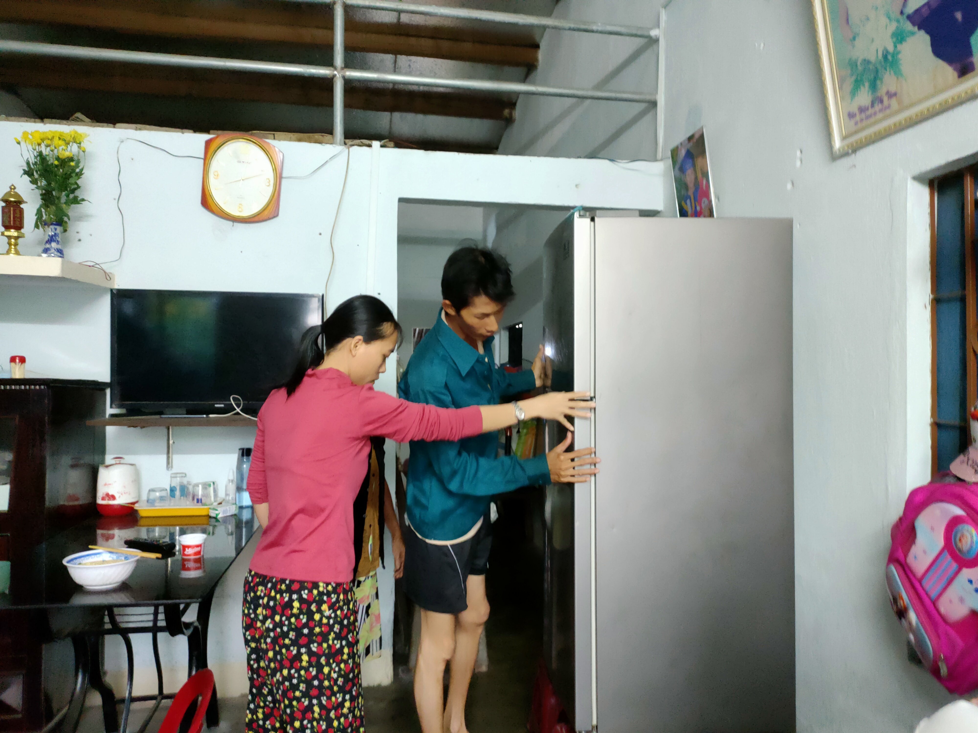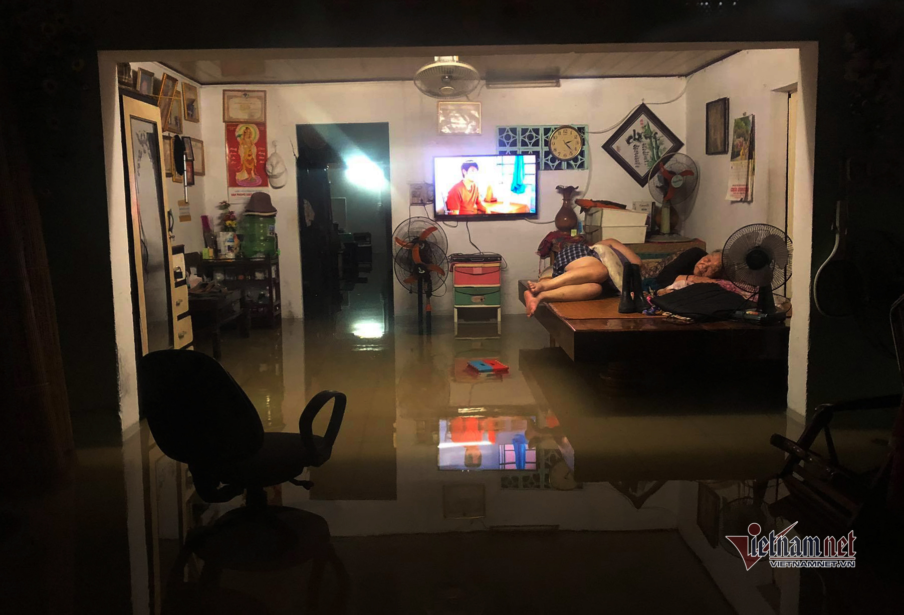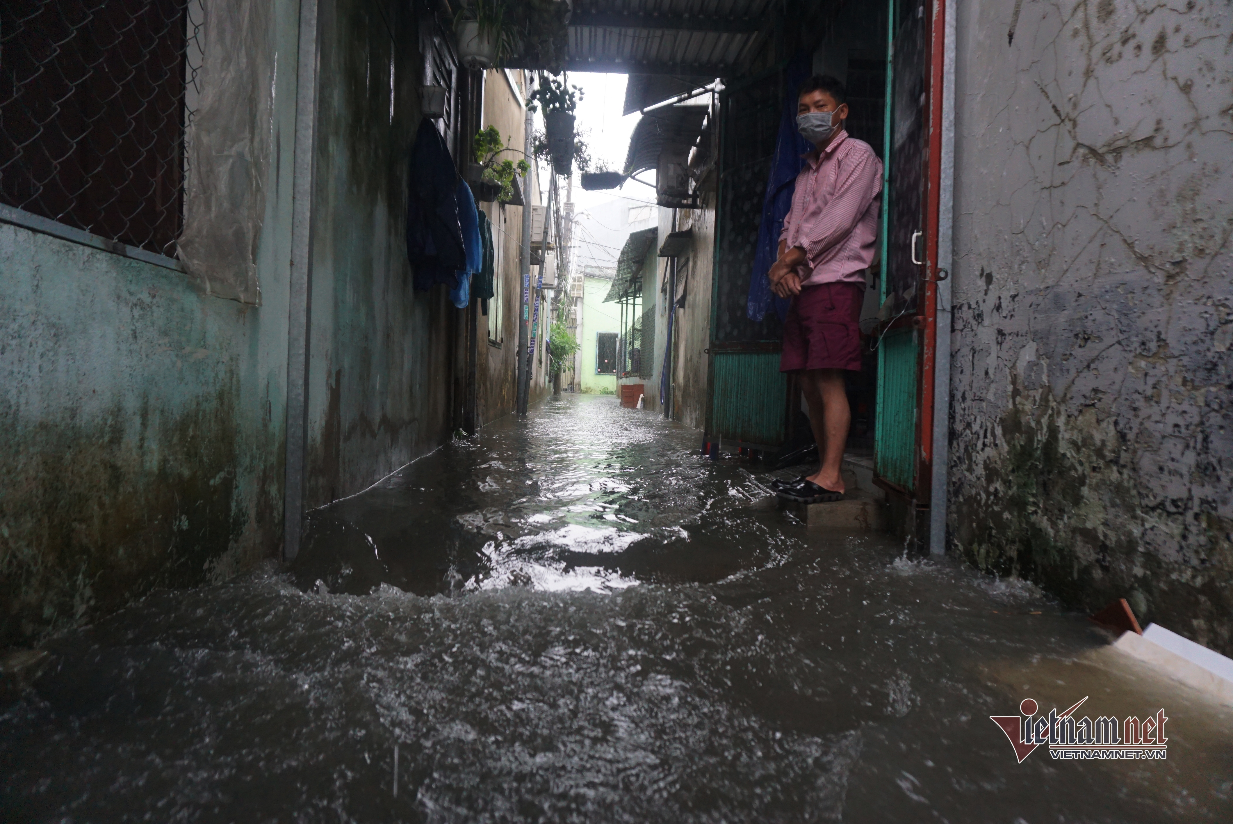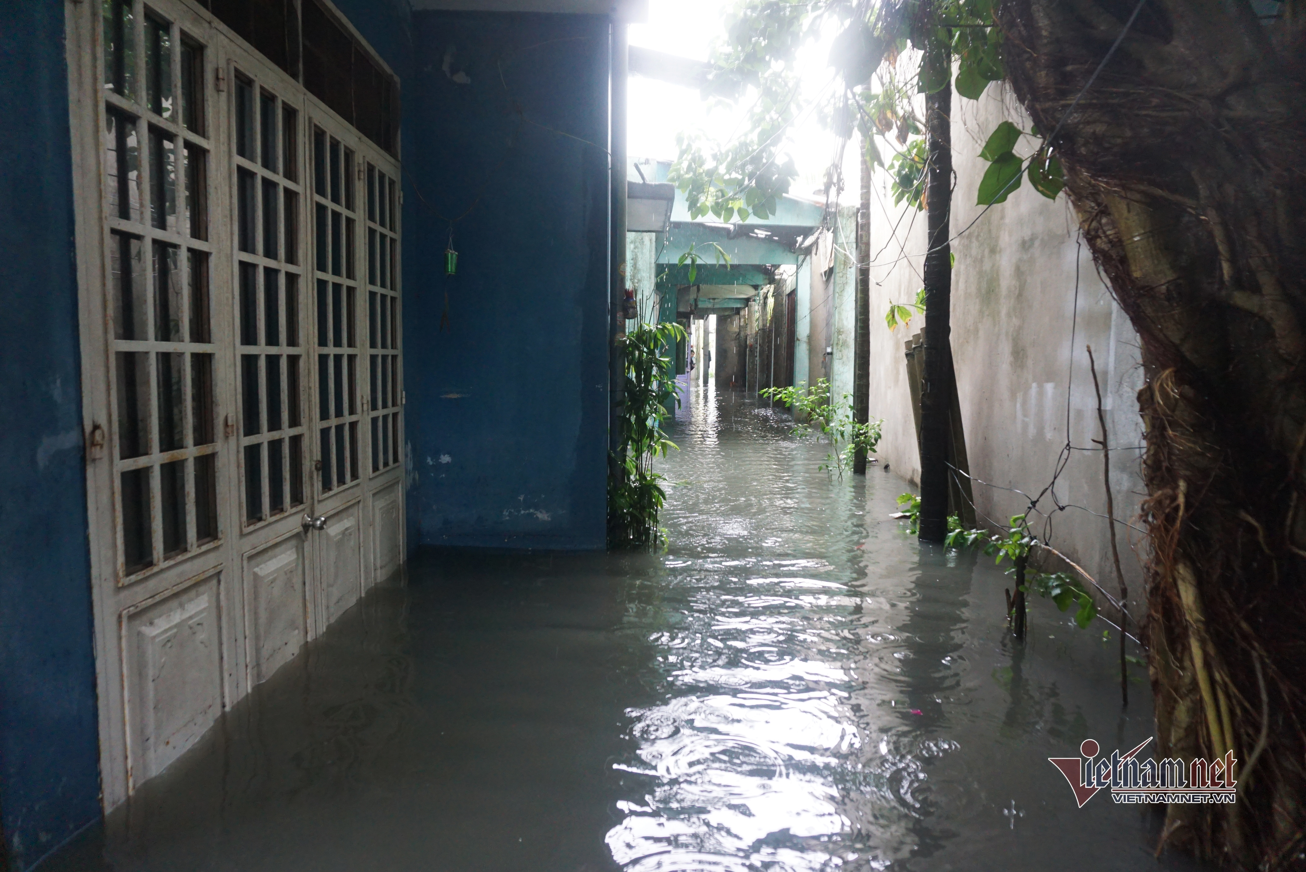 Một số hộ dân cho hay trong đêm 11/9, họ phải thức để tát nước ra ngoài. Lo nước lớn, một số hộ dân đưa con nhỏ đi đến nhà người thân để gửi .