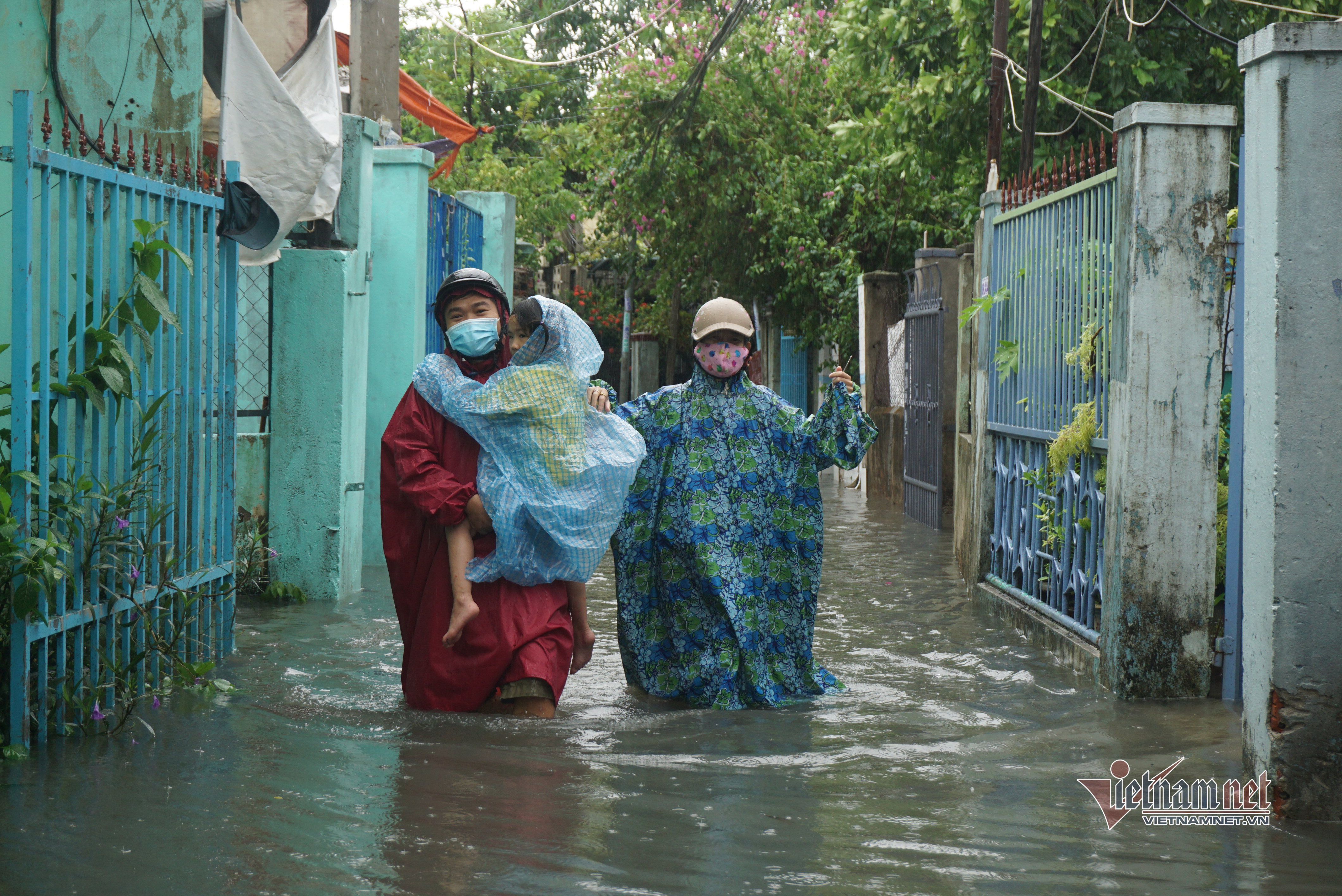 12/09/2021 23:11Mưa xối xả nhiều giờ liên tiếp, nhà ngập, người dân miền Trung bồng con đi gửi