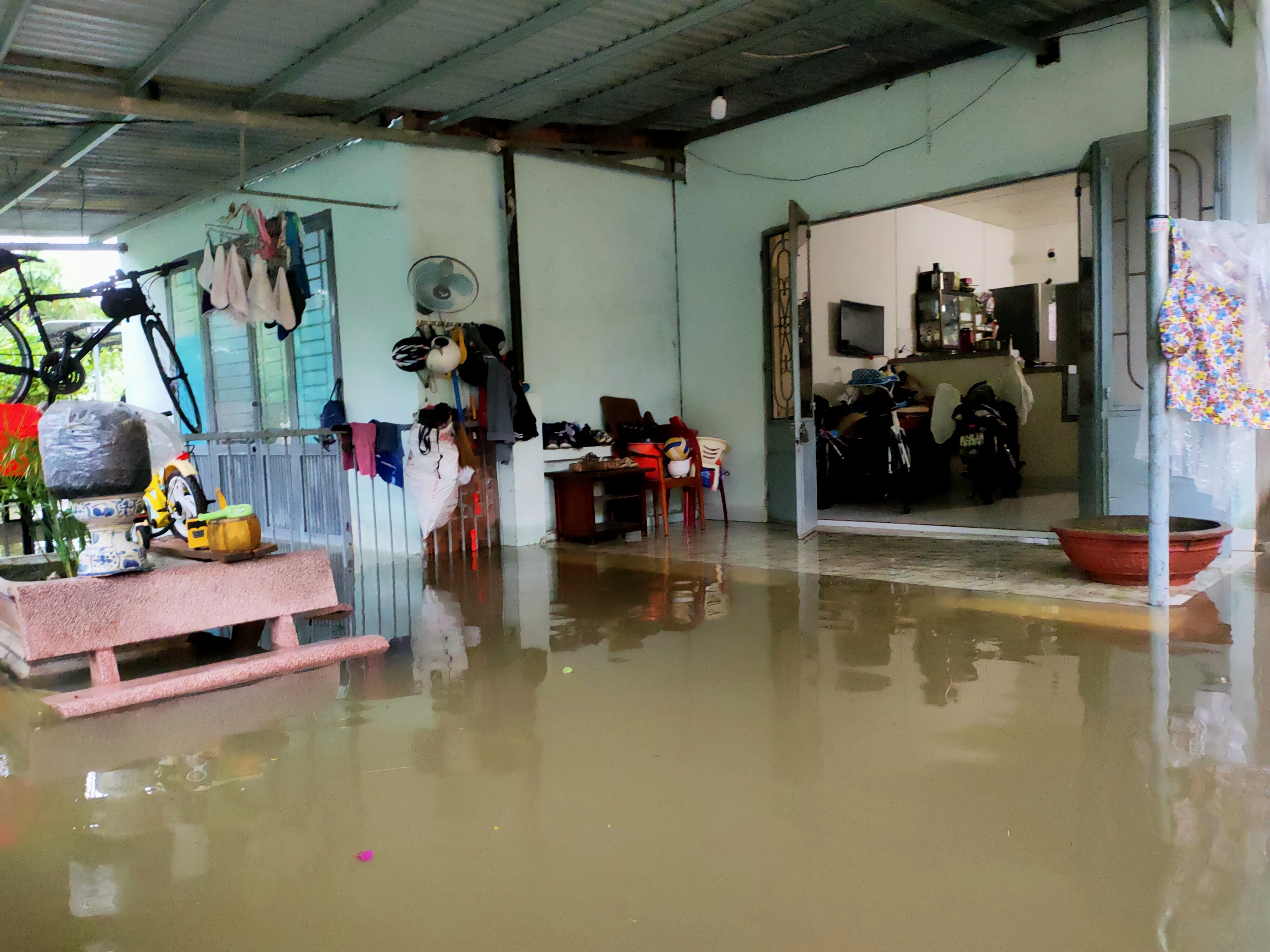"Khu vực này thì thường xuyên xảy ra tình trạng mưa là ngập. Nhưng năm nay thì mới mưa theo từng đợt nên chưa xảy ra tình trạng ngập sâu. Hiện tại, bà con chủ yếu vẫn ở nhà để coi giữ đồ đạc hoặc dọn qua nhà khác cao hơn trong khu vực. Nếu mưa to kéo dài thì chúng tôi sẽ vận động bà con đi sơ tán để đảm bảo an toàn", ông Thuyên nói.