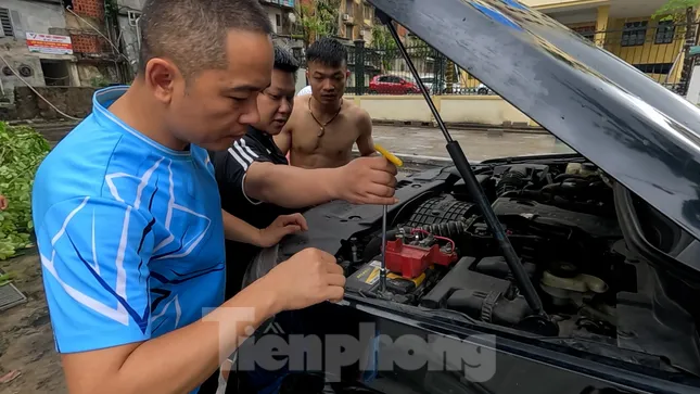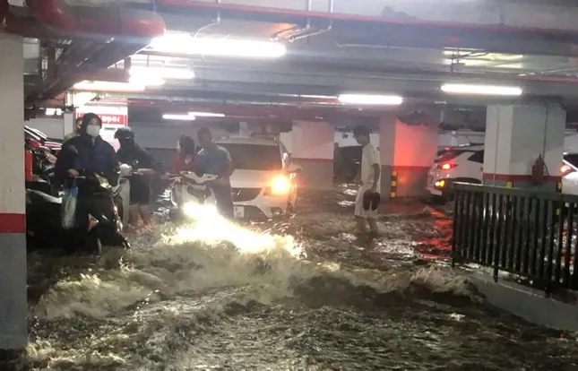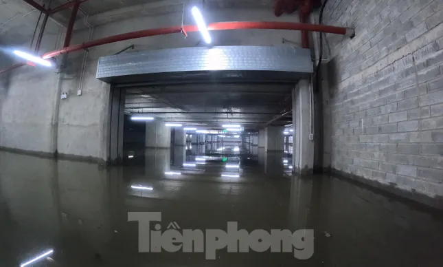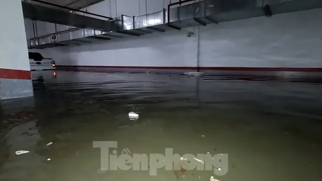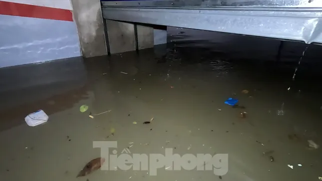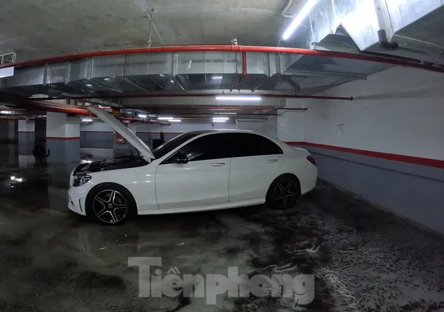 Hiện tại, cư dân ở đây đang kiểm tra xe bị hư hại, đồng thời phối hợp với đơn vị quản lý chung cư tập hợp máy bơm để bơm nước ngập ra ngoài.