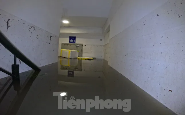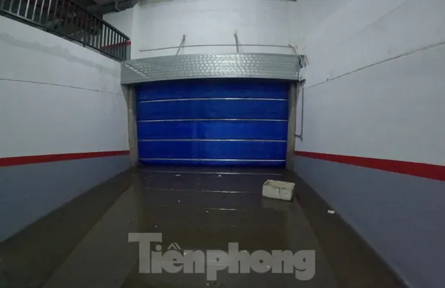 "Hiện nước vẫn ngập toàn bộ khu vực hầm số một. Ngoài ra, lối duy nhất đi xuống hầm đã bị chặn lại bởi cánh cửa và mắc kẹt không thể kéo lên được, tôi và chồng loay hoay đến gần trưa vẫn chưa mang được xe ra ngoài để sửa chữa", chị Hoa cho biết.