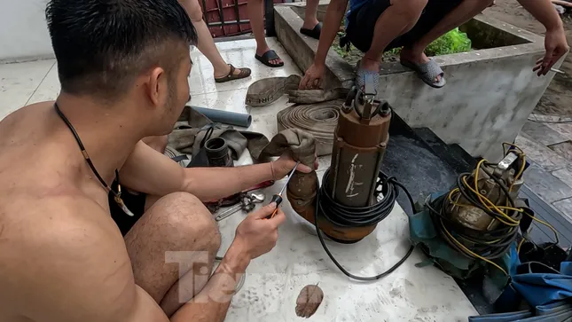 Đến gần trưa, do thấy nước chưa rút nên một số cư dân đã thuê bơm từ bên ngoài để hút nước ra ngoài. Tuy nhiên, do hầm số một của chung cư rộng lại thông với tòa bên cạnh nên sau hơn 2h bơm, nước vẫn ngập sâu khoảng 50 cm.