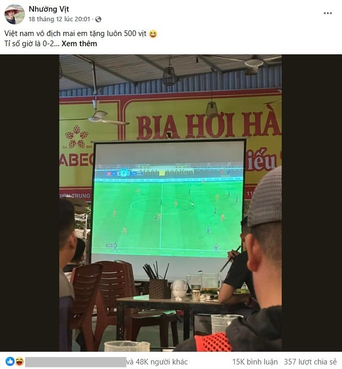 Câu chuyện bắt nguồn từ một bài đăng ngẫu hứng của anh Nhường vào khoảng 20h ngày 18/12, thời điểm U22 Việt Nam đang rơi vào thế khó khi bị U22 Thái Lan dẫn trước với tỉ số 0-2. Trong lúc cảm xúc dâng trào, anh đã tuyên bố trên mạng xã hội: “Việt Nam vô địch mai em tặng luôn 500 con vịt”.