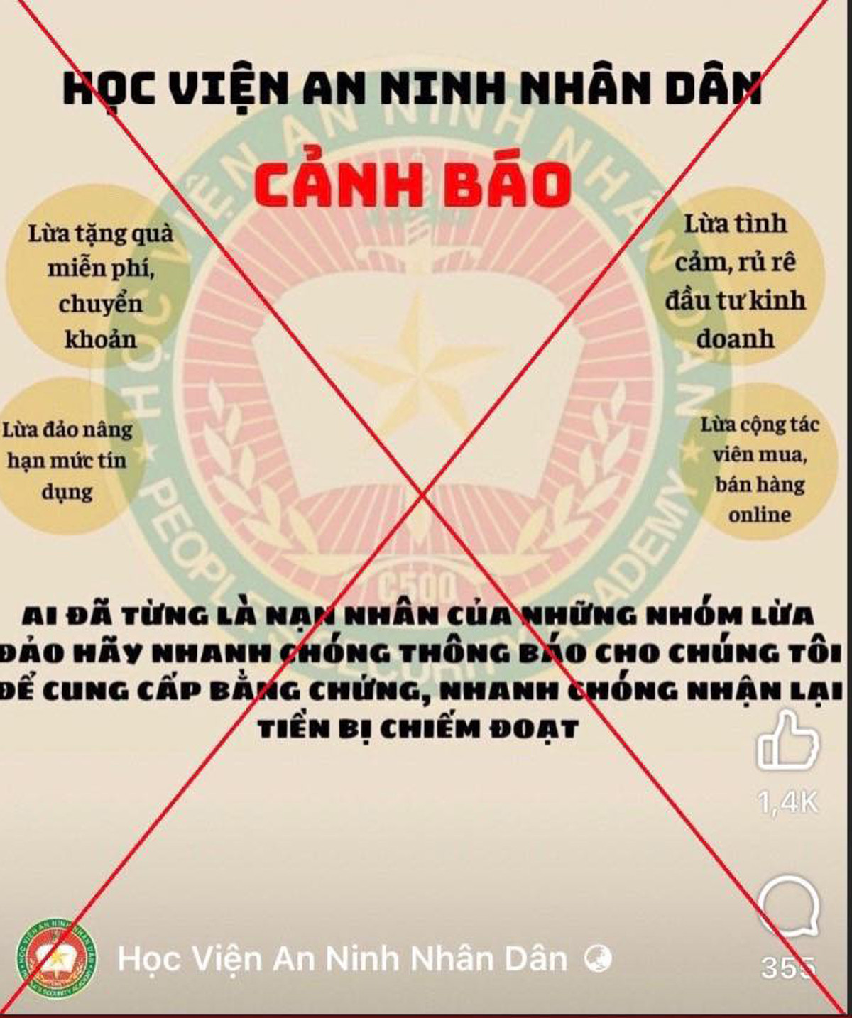 Ngày 16/4, Công an TP Hà Nội cho biết, trên mạng xã hội xuất hiện tài khoản giả mạo Học viện An ninh nhân dân hỗ trợ các nạn nhân bị lừa đảo qua mạng.