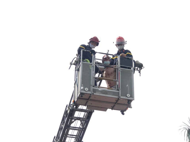 Lực lượng chức năng sau đó đã tiếp cận, trấn an tinh thần, sử dụng biện pháp nghiệp vụ để khống chế người đàn ông. Người đàn ông này sau đó được đưa xuống bằng xe thang an toàn.