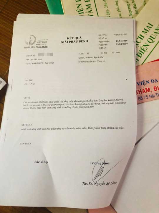 BS Hùng đánh giá bước đầu, theo phản ánh, việc này không có bất thường về mặt chuyên môn. Bởi, bệnh nhân chuyển ra chẩn đoán là u, như vậy đã thấy một khối choán chỗ ở tủy còn bản thân đây là u viêm hay u ác tính sẽ xem xét sau.