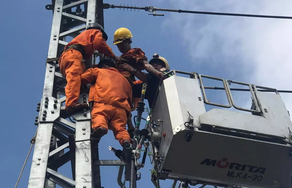 Công nhân điện lực đã leo lên cột giữ người bị nạn, tránh rơi xuống đất, đồng thời cùng lực lượng chức năng đưa nạn nhân xuống. Nạn nhân bị phóng điện bỏng vùng mặt và 2 cánh tay.