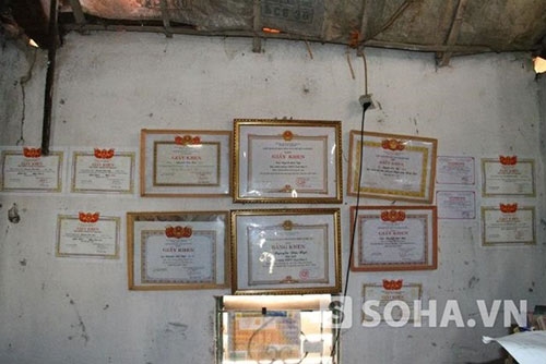 Góc học tập của Ngà treo đầy những giấy khen, bằng khen về thành tích học tập. |
