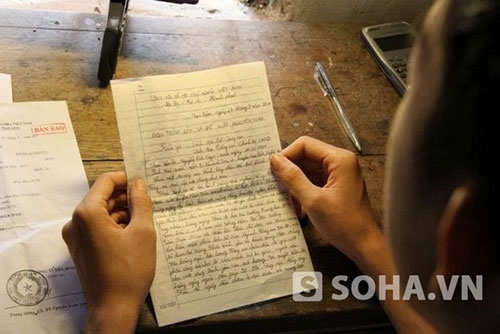 Ngà thu mình trong góc học tập với bức tâm thư gửi Bộ Công an xin được xét duyệt. |