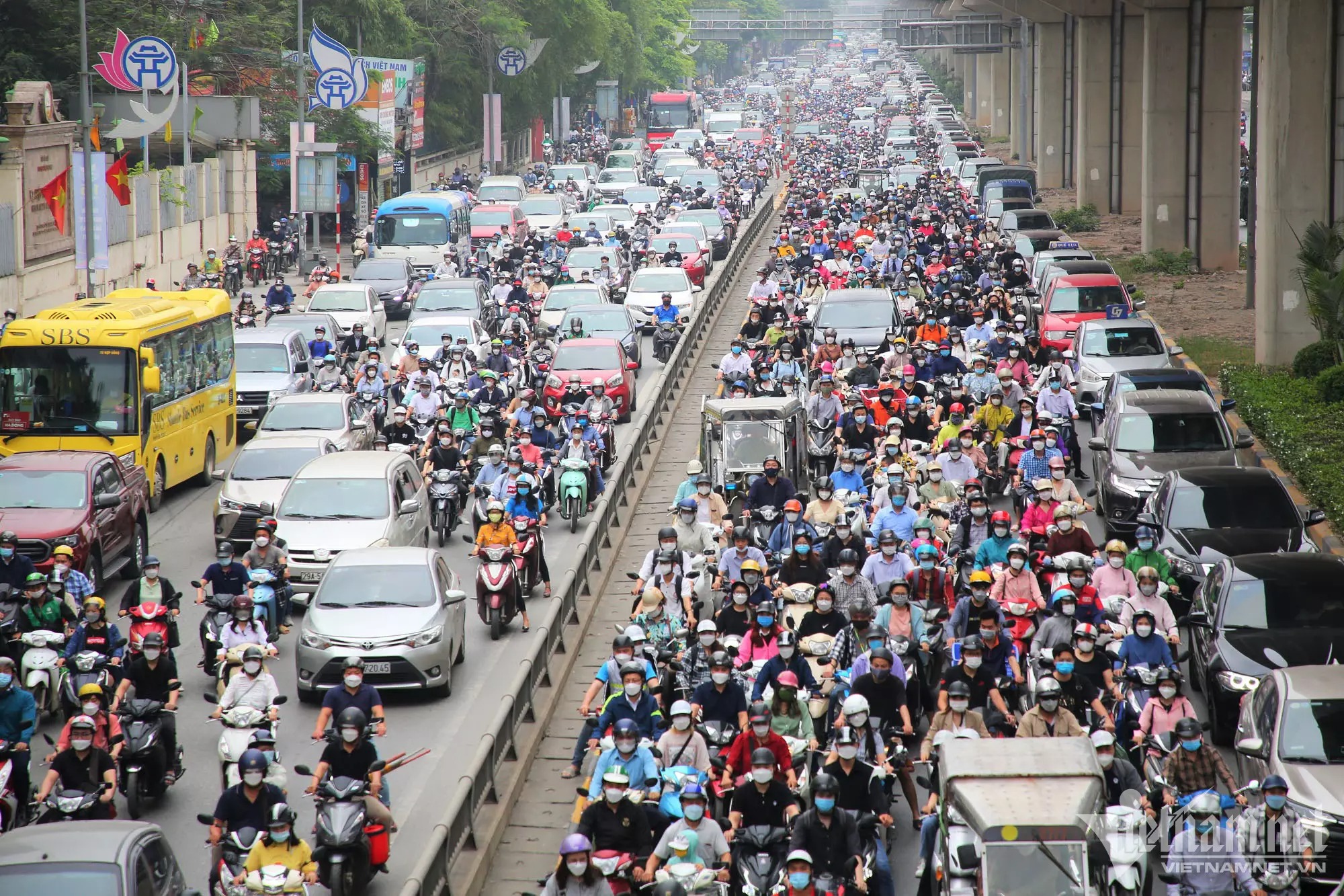 Tới 8h45' hiện trường vẫn chưa được giải quyết khiến cho hướng đi vào trung tâm thành phố ùn tắc nghiêm trọng.