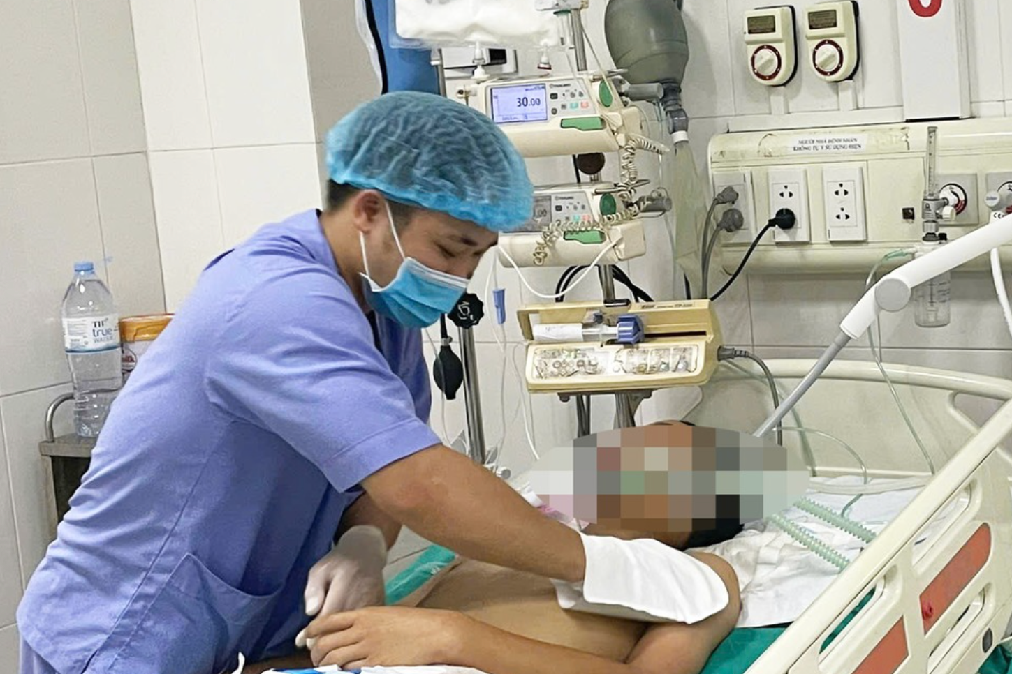 Tai nạn xảy ra với bệnh nhi N.L.K, 15 tuổi, quê ở huyện Thiệu Hóa, Thanh Hóa, ngày 10/8. Trước khi được chuyển lên Bệnh viện Nhi Thanh Hoá, nam sinh này được gia đình đưa đi cấp cứu ở cơ sở y tế tuyến huyện, xử lý truyền dịch, thở oxy.