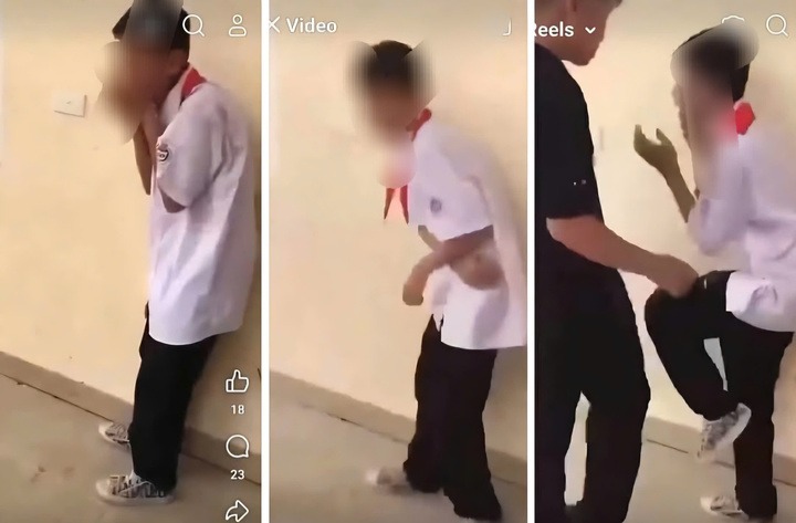 Ngày 24/4, trên mạng xã hội xuất hiện đoạn clip khoảng 32 giây ghi lại cảnh một nam sinh bị hai học sinh khác đá, đấm liên tục.