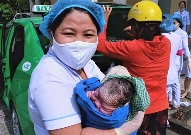 Theo bà Mứt, khoảng 8h30 sáng nay, tài xế Trần Long Biên đón sản phụ tên Minh và gia đình từ xã Tam Xuân 2 (huyện Núi Thành) đến bệnh viện trên địa bàn TP Tam Kỳ để sinh.