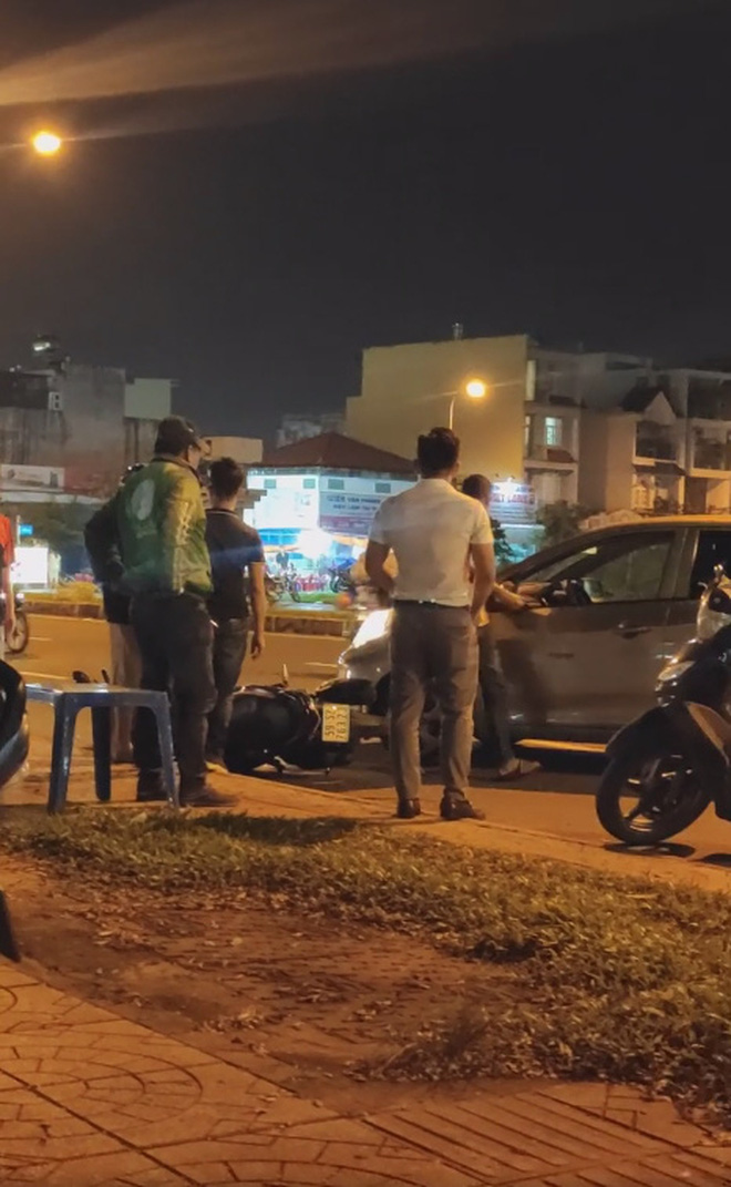 Anh đi xe máy phân minh rằng không có chửi anh xe hơi nhưng anh xe hơi cứ bay vào đánh tới tấp rồi gọi thêm 2 anh bạn nữa đến đánh phụ, đã vậy anh xe hơi còn tát vào mặt chị kia và cứ liên tục quát tháo".