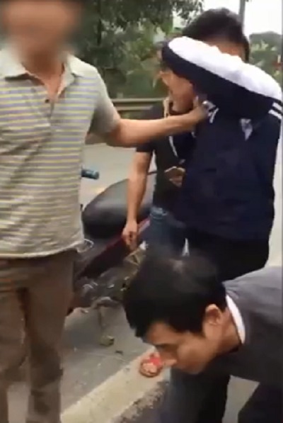 Trong khi người đàn ông tỏ ra vô cùng bức xúc tát liên tiếp vào mặt nam thanh niên thì nam thanh niên này chỉ biết liên tục khóc lóc, xin tha: "Em xin lỗi, đây là lần đầu tiên em làm việc này. Cho em xin. Em sợ lắm rồi, anh đừng quay nữa.... Các chú đừng gọi công an nữa, bố mẹ cháu khổ lắm!".